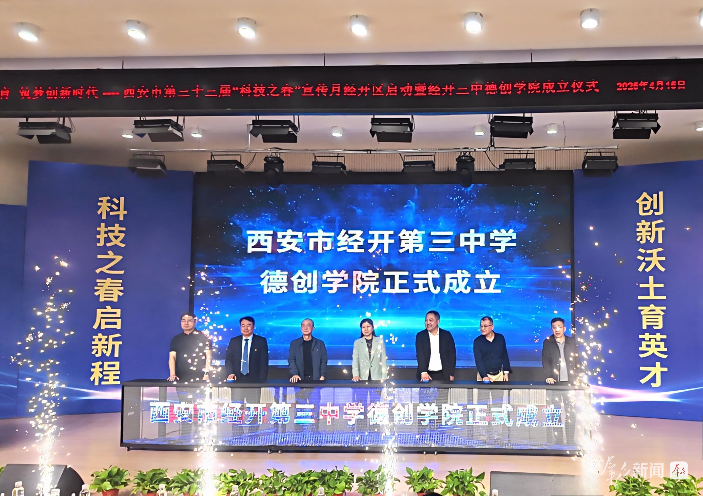 4月15日,西安市第三十三届“科技之春”宣传月活动经开区启动仪式与西安市经开第三中学(以下简称“经开三中”)德创学院成立仪式在经开三中盛大举行。