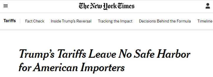 美国《纽约时报》网站的文章也认为,美国政府的新关税政策令美国进口商失去了所有“安全港”。对于那些转移生产的企业来说,新关税政策破坏了他们的战略布局,也埋下了隐患的种子。