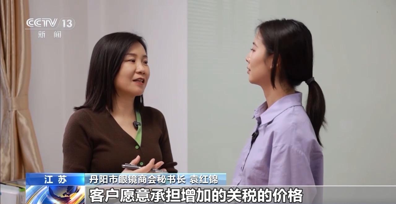 丹阳市眼镜商会秘书长 袁红锦:以外贸出口为主的这家企业已经跟他的客户谈好了,客户愿意承担增加的关税的价格。有的企业要开拓其他区域的客户,或者说部分要转到内销市场。