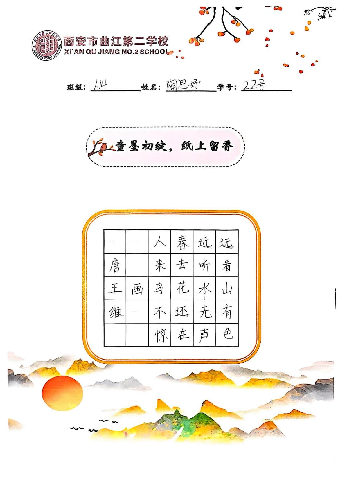 一年级十四班 陶思妤
