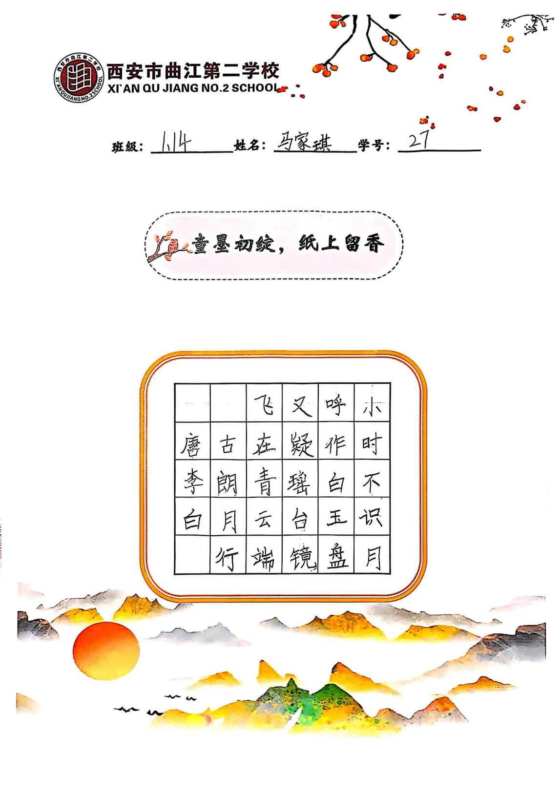 一年级十四班 马家琪