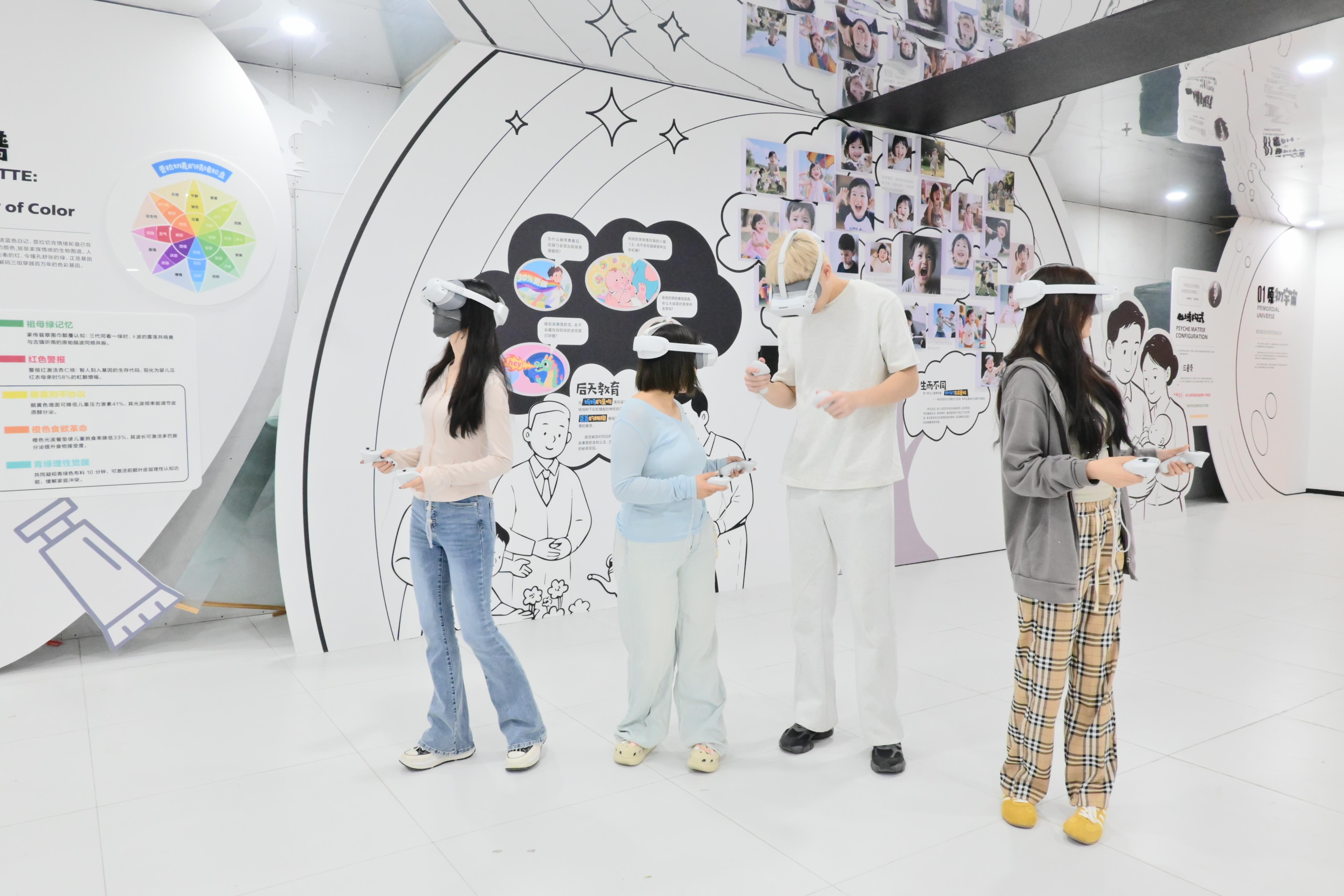 “怪兽解压站”创新构建了“线上互动+线下感知”的双重疗愈体系。线上部分,参与者可佩戴VR设备进入五大奇幻场景——忧郁森林、压抑冰川、钢铁城市、孤独沙漠与和解花园,与象征不同情绪的“怪兽”展开对话。通过沉浸式互动,引导用户直面内心压力,在虚拟世界中完成情感释放。线下空间则聚焦真实场景中的情绪疏导,通过“家庭关系修复实验室”主题展览,借助数字交互技术、即时影像、AI虚拟心理医生等科技设备,以趣味形式传递情绪管理技巧,帮助公众探索家庭关系的深层联结。