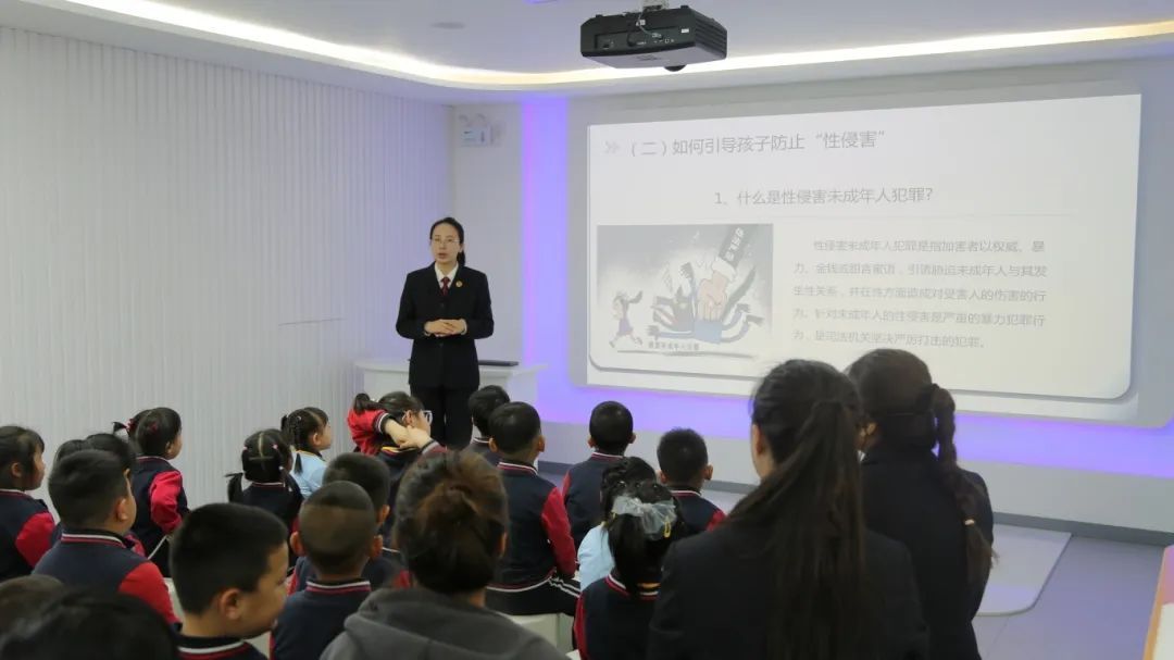 在法治课堂环节,检察官通过“家长课堂+儿童微讲座”双线模式开展普法宣讲。面向家长,检察官结合典型案例,系统解读《陕西省实施〈中华人民共和国家庭教育促进法〉办法》中家长的法定职责、科学教育方法及未成年人权益保护要点,明确指出家庭教育既是道德要求更是法律责任;针对幼儿群体,检察官以生动有趣的语言、情景模拟的方式,教导孩子们认识身体隐私部位,学习自我保护知识。同时,检察官还重点强调家庭在未成年人保护中的“第一道防线”作用,提醒家长加强对孩子的日常关注,若发现侵害行为及时报警并做好证据固定与心理疏导。