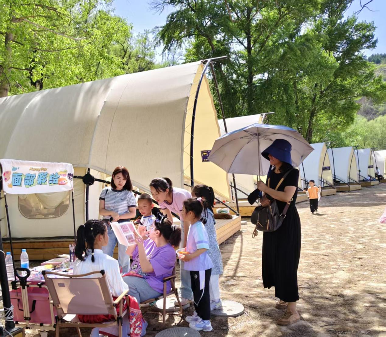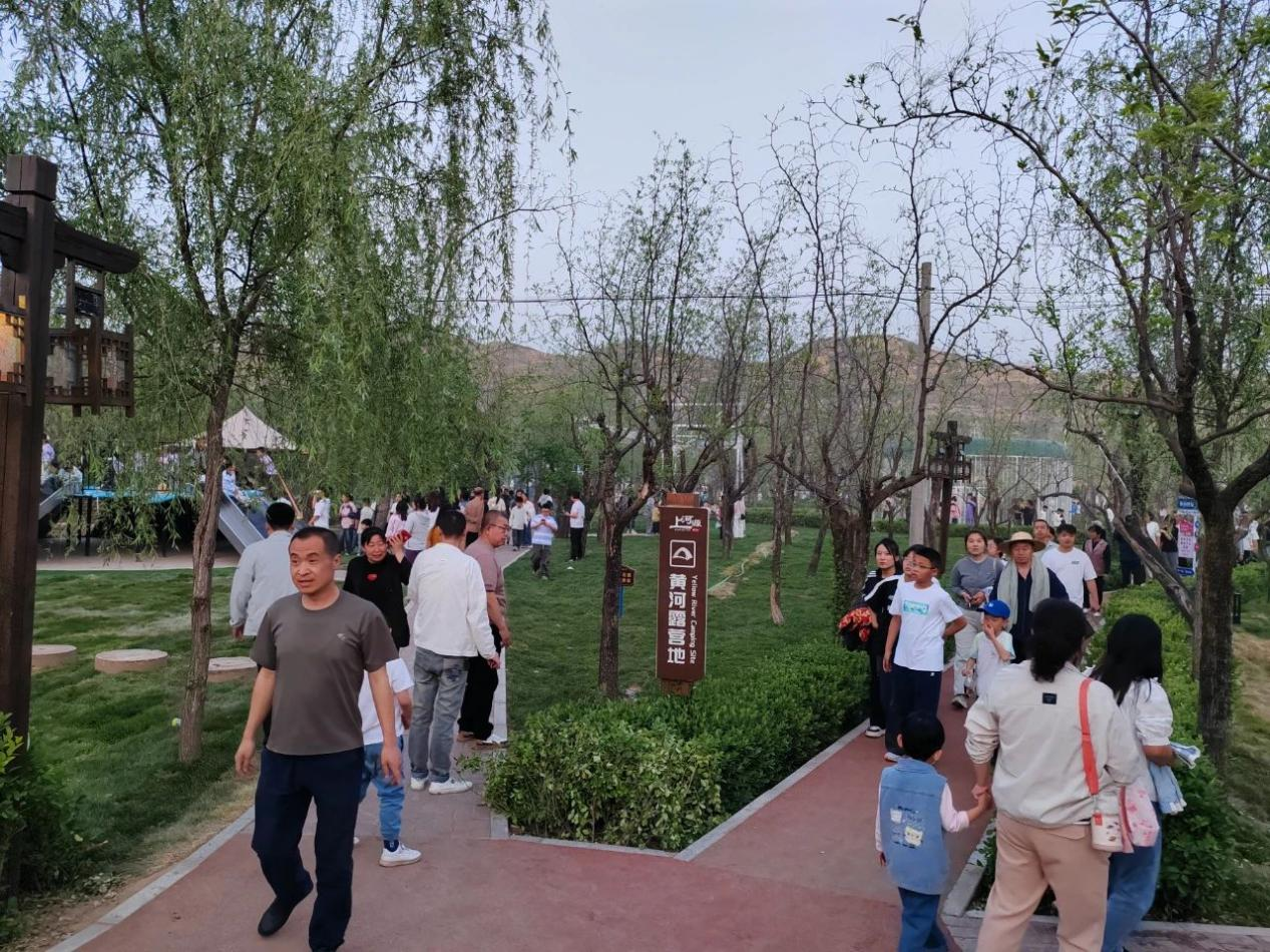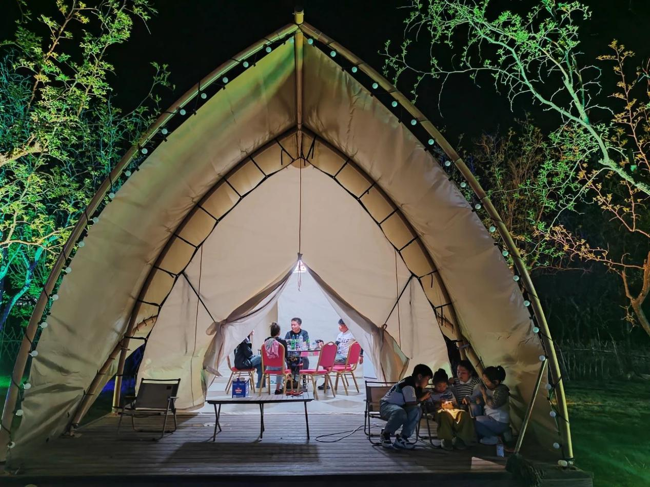 星空帐篷散落于碧绿草坪,萌宠乐园里羊驼、小矮马等的动物引得孩子们惊呼,炫酷卡丁车在赛道上激烈角逐。游客们或漫步于小桥流水处感受初夏的惬意,或围坐在帐篷下品尝本地特色美食,看黄河奇石展领略大自然的鬼斧神工,听陕北民歌感受黄土高原的粗犷豪情,住民宿窑洞感受清凉舒适的陕北建筑。夜幕降临,星空下的篝火晚会燃起,游客们手拉手载歌载舞,假日的欢乐在天地间流淌。