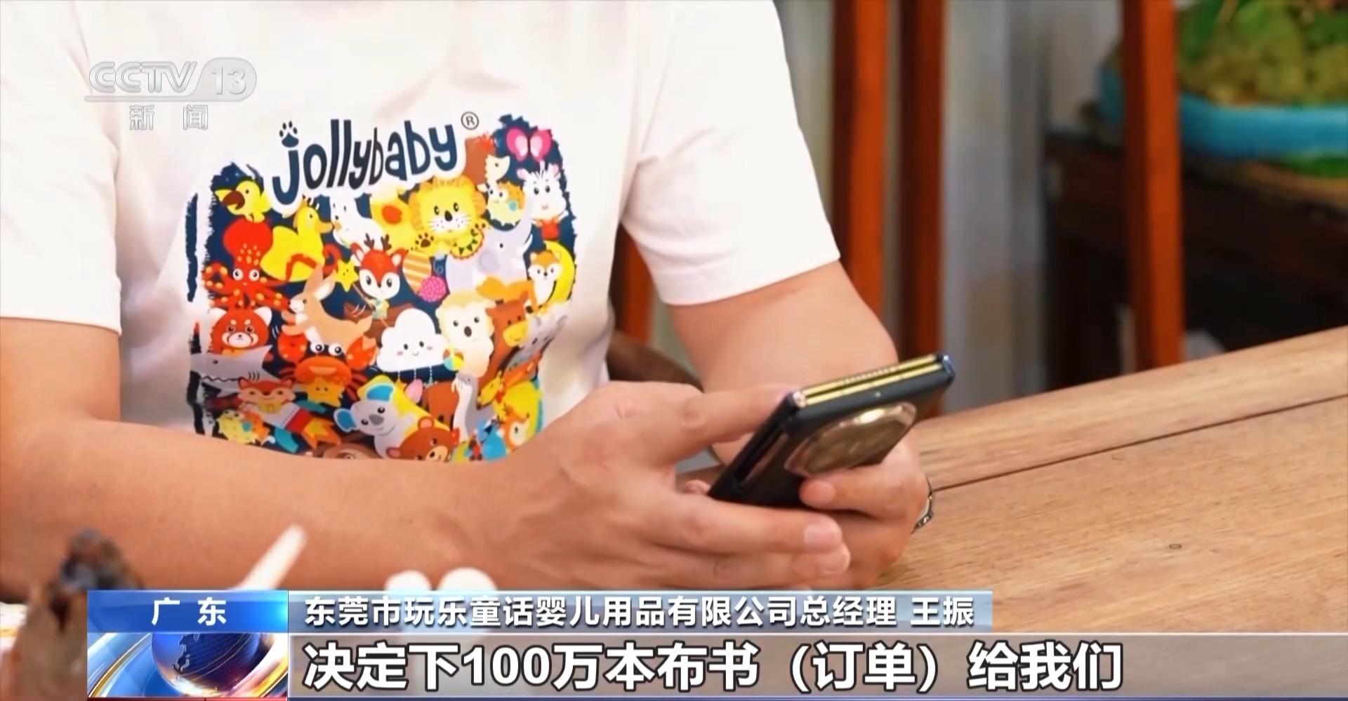 东莞市玩乐童话婴儿用品有限公司总经理 王振:到晚上12点多他们就发信息给我,决定在我们这里下100万本布书订单,当时我们大家非常非常兴奋。