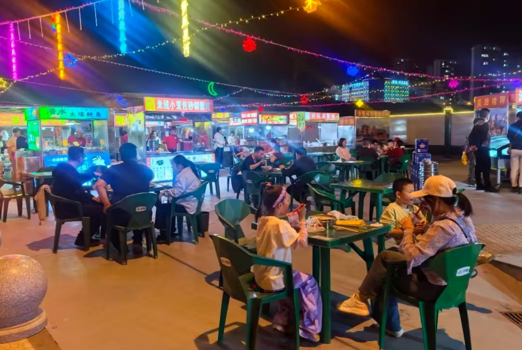 锅气蒸腾、热油滋啦,手机收款提示音此起彼伏,摊主们每天都有可观的收入。傍晚,周边的市民携妻带子,在夜市品着美食,分享着一天的收获,路人也纷纷拍照打卡,在朋友圈中为夜市留影点赞,一切都是那么的和谐。