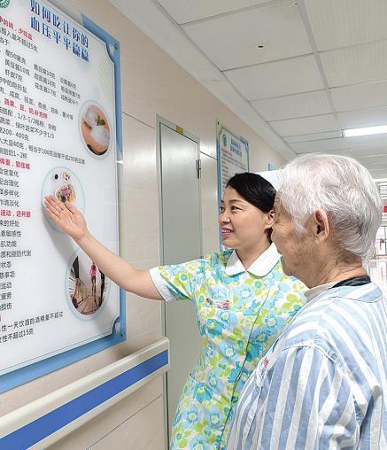 5月8日,王云为老年患者做高血压知识科普。群众新闻记者 霍强摄