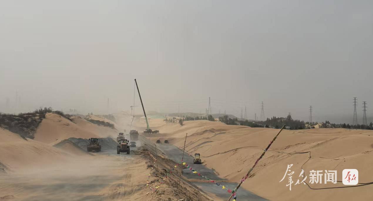 “黄沙迷人眼,狂风撩我衣。每次现场回来,嘴中含沙,衣服口袋都被灌满了沙子。”工程部长白前旭调侃道。自4月以来,位于毛乌素沙漠边缘的中铁四局六公司引黄8标施工现场,持续遭受狂风裹挟黄沙的侵袭。飞扬的沙尘不仅严重降低能见度,大幅增加施工生产的安全风险,更如细小“刀片”刮在作业人员的脸上,成为工程推进的巨大阻碍。面对严峻挑战,项目部主动作为、积极谋划,以科学有效的举措打响了一场抗风沙、保进度的施工攻坚战。