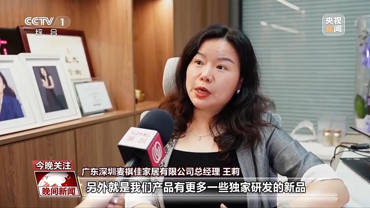 深圳麦祺佳家居有限公司总经理 王莉:今天又收了几张订单,把美国市场比例控制在30%以内,另外就是我们有更多独家研发的新品,让我们的产品不可替代。