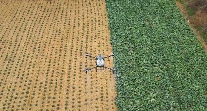 闫怀强:这是农业植保无人机。我们小时候背着喷雾器去打农药,一天也就打个几亩地。现在用这一款植保无人机很快就能一片地洒过去,效率直接提升几百倍。它的应用成本也很低,一亩地平均下来也就是5块钱左右。