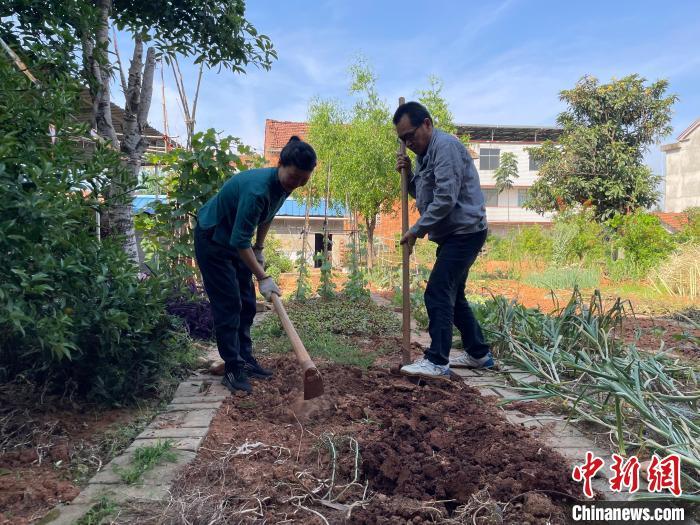 5月13日,苏原庆与刘保芳在菜地劳作。 中新社记者 马芙蓉 摄