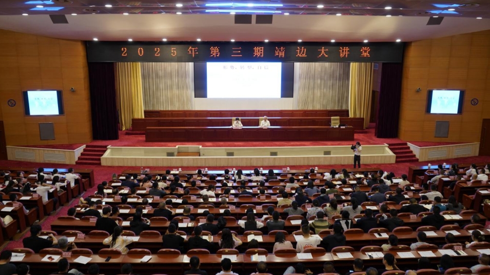 5月27日,2025年第三期靖边大讲堂举行,经济学家、管理学家、资深物流专家单元庄教授作专题宣讲,靖边县委常委、宣传部部长李京津主持。