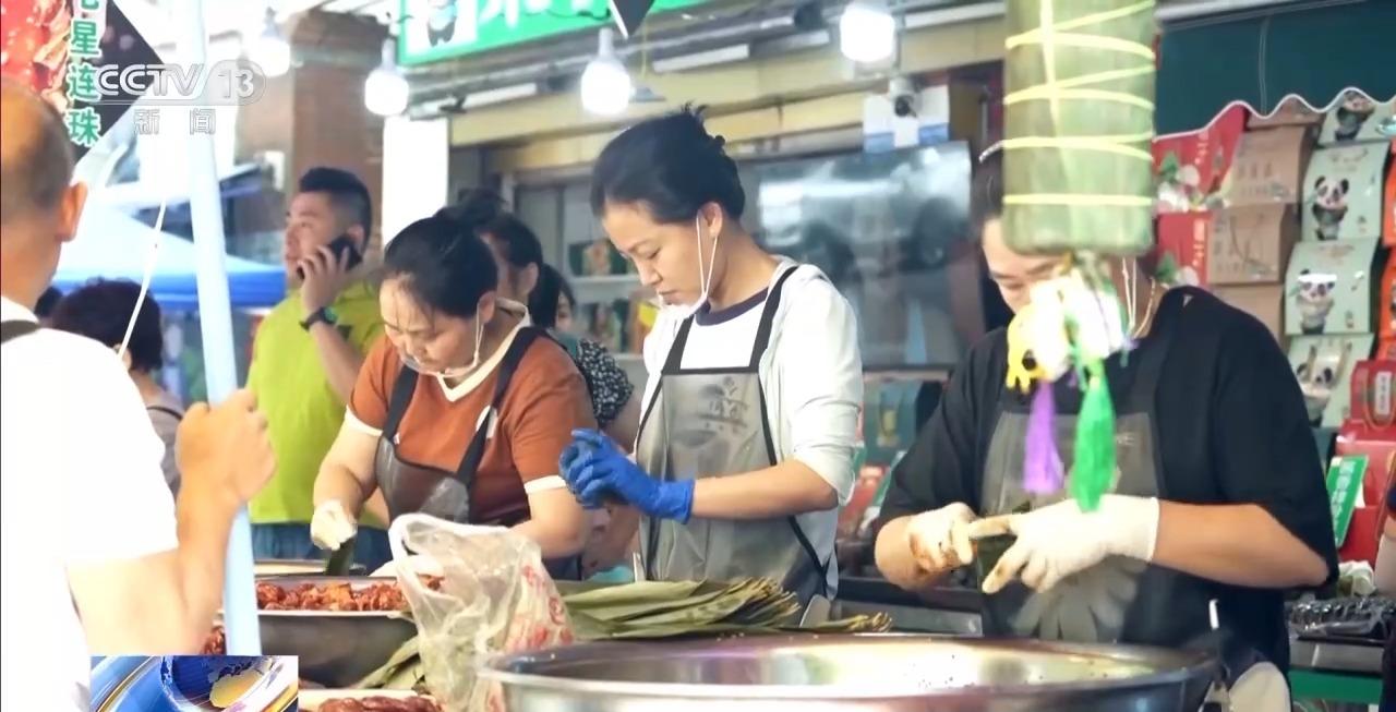 四川成都:糯香四溢 粽子一条街热闹繁忙