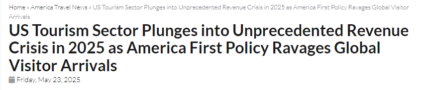 报道称,这在很大程度上是受到“美国优先”政策的影响,数以百万计的潜在赴美游客因此另选目的地,预计美国旅游业收入将损失超120亿美元。这种下滑不仅威胁到每年为美国经济贡献可观收入的旅游业,还使大量工作岗位和重要税收收入面临风险。