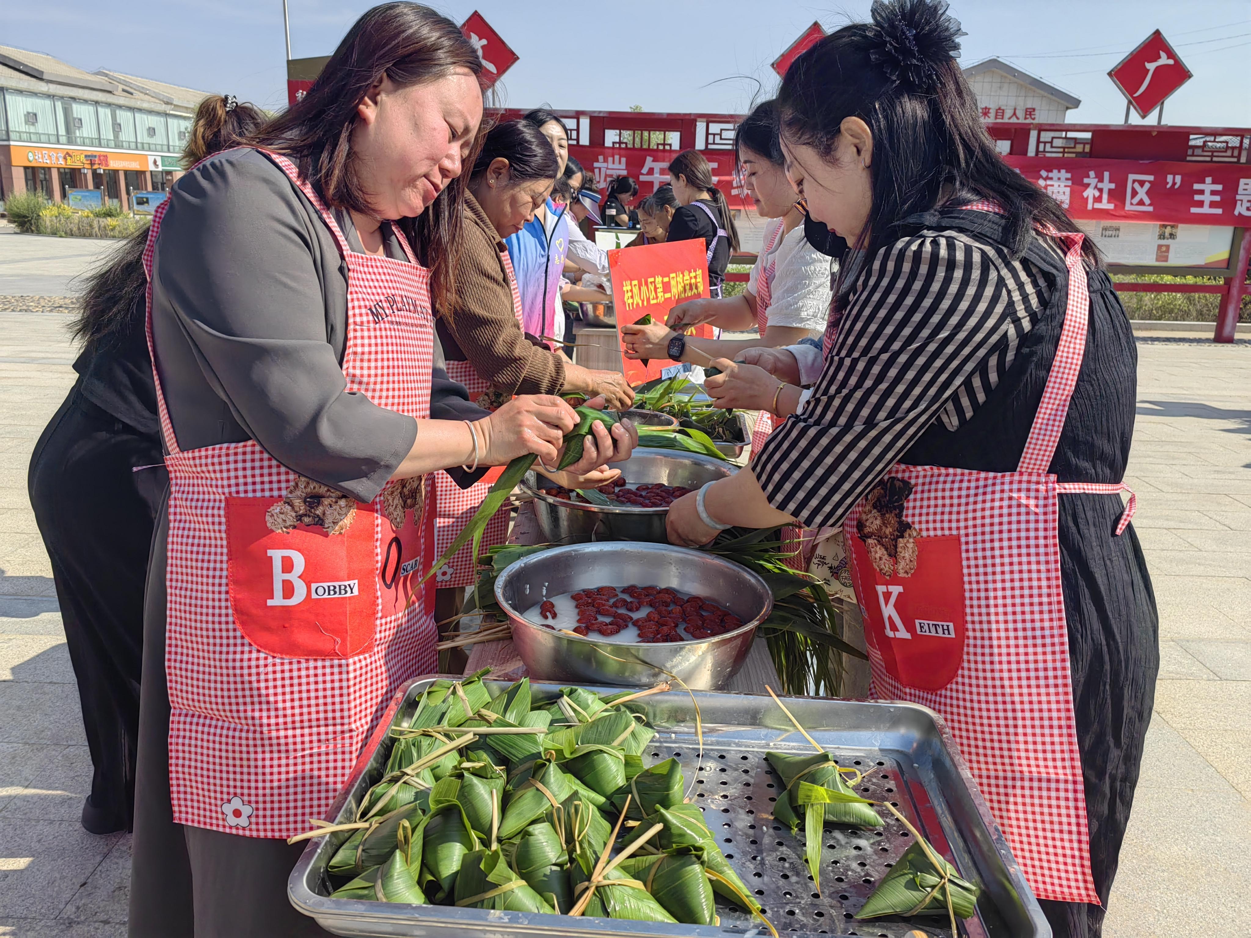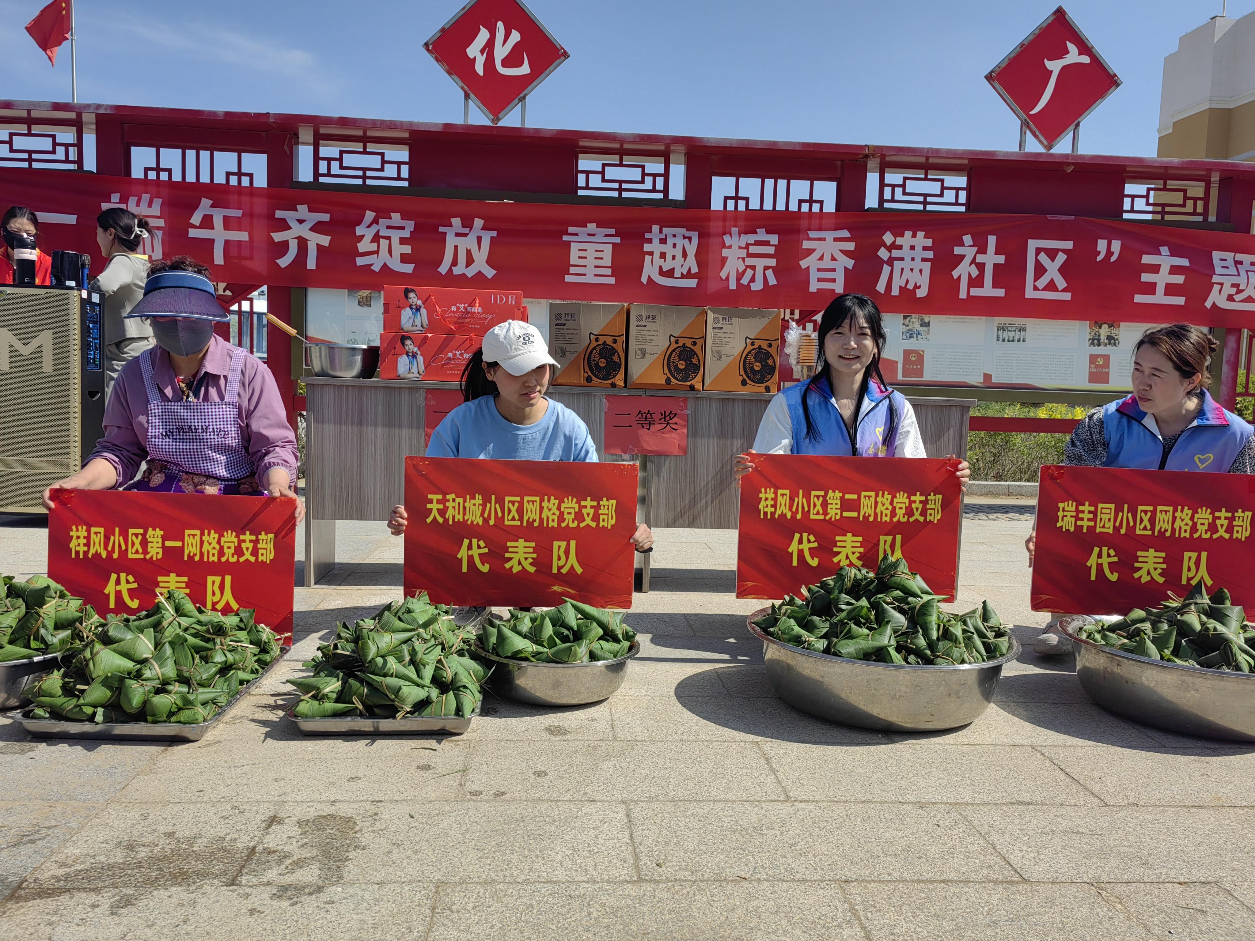 活动现场,包粽子比赛率先拉开帷幕。祥风小区第一、二网格党支部,瑞丰园网格党支部及天和城网格党支部参赛选手齐聚社区广场。随着一声令下,粽叶翻飞、糯米轻填,参赛者手法娴熟,转眼间,棱角分明的粽子堆满桌面。现场加油声、欢笑声交织,最终评审团从速度、数量、品相三方面评选出优胜队伍,为大家送上实用奖品与节日祝福,让传统习俗在互动中焕发活力。