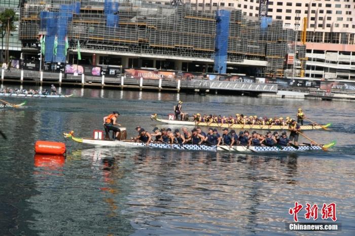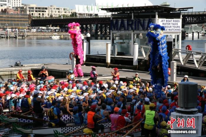 当地时间2月8日,悉尼新春龙舟赛在澳大利亚悉尼达令港热烈进行。中新社记者 顾时宏 摄