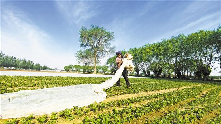近日,靖边县东坑镇农民王彩梅揭除覆盖在芹菜上的防冻防沙无纺布膜。针对当地春夏季风沙大、温差显著的气候特点,当地农业农村部门推广使用防冻防沙无纺布膜技术,有效保障芹菜生长。 通讯员 陈治武摄