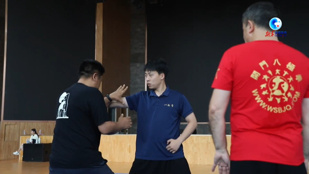 国家级非物质文化遗产代表性项目沧州武术(孟村八极拳)省级代表性传承人吴大伟与他们切磋武艺、交流文化。