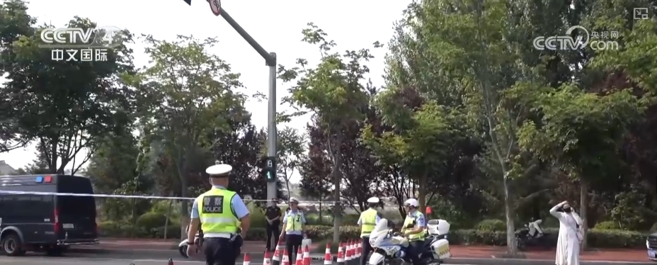 在山东淄博主城区,各考点周围利用无人机进行高空道路巡检,最大限度确保道路畅通,并设置“学生专用通道”,确保考生顺利进入考场。