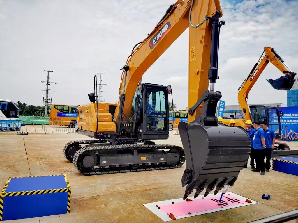 作为本届中非经贸博览会唯一在长沙以外举办的展览,再制造展规模宏大。约4万平方米的中心展区展出的大量挖掘机、起重机、混凝土泵车、装载机等“机甲巨兽”,是使用回收旧设备再制造生产。它们外观与全新工程机械几乎没有区别,性能可以满足基建各类场景需求。徐工集团工作人员现场操作一台再制造的挖机用斗齿“握”着毛笔,在地面一张红纸上端端正正写下了“中非经贸博览会”七个字,引得在场中外人士鼓掌叫好。
