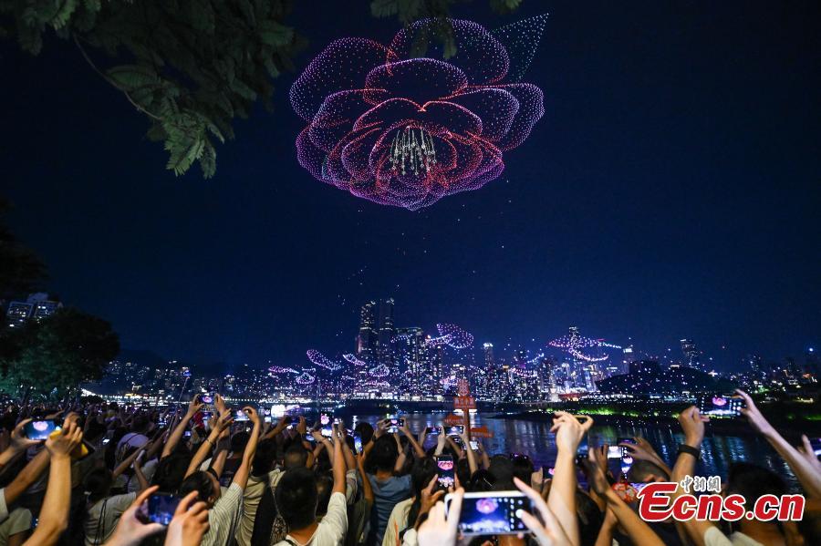 Citizens watch a drone light show at Nanan District, southwest China's Chongqing, June 17, 2025. (Photo: China News Service/He Penglei)