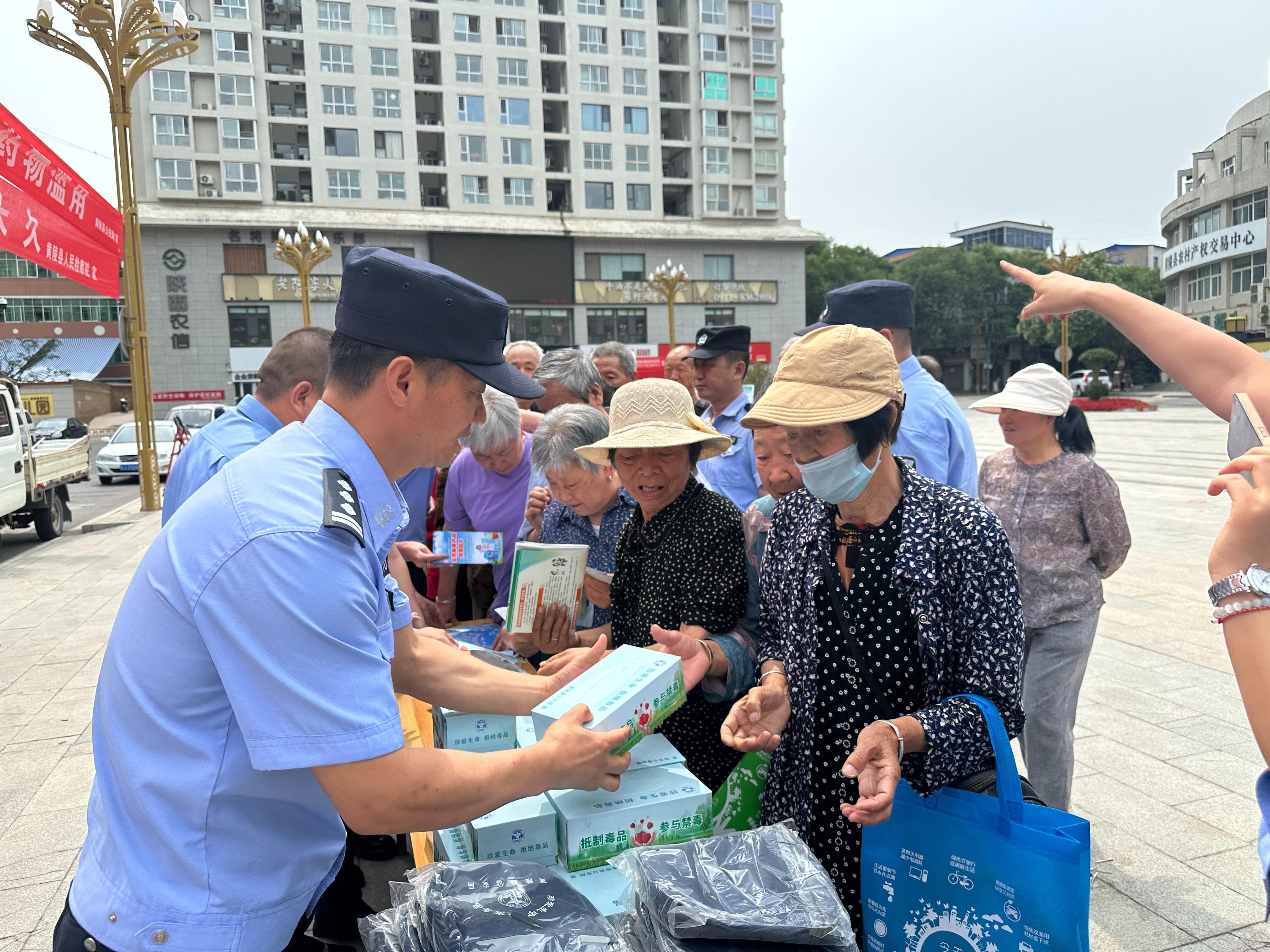 民警向群众讲解禁毒相关知识,增强群众抵制毒品意识