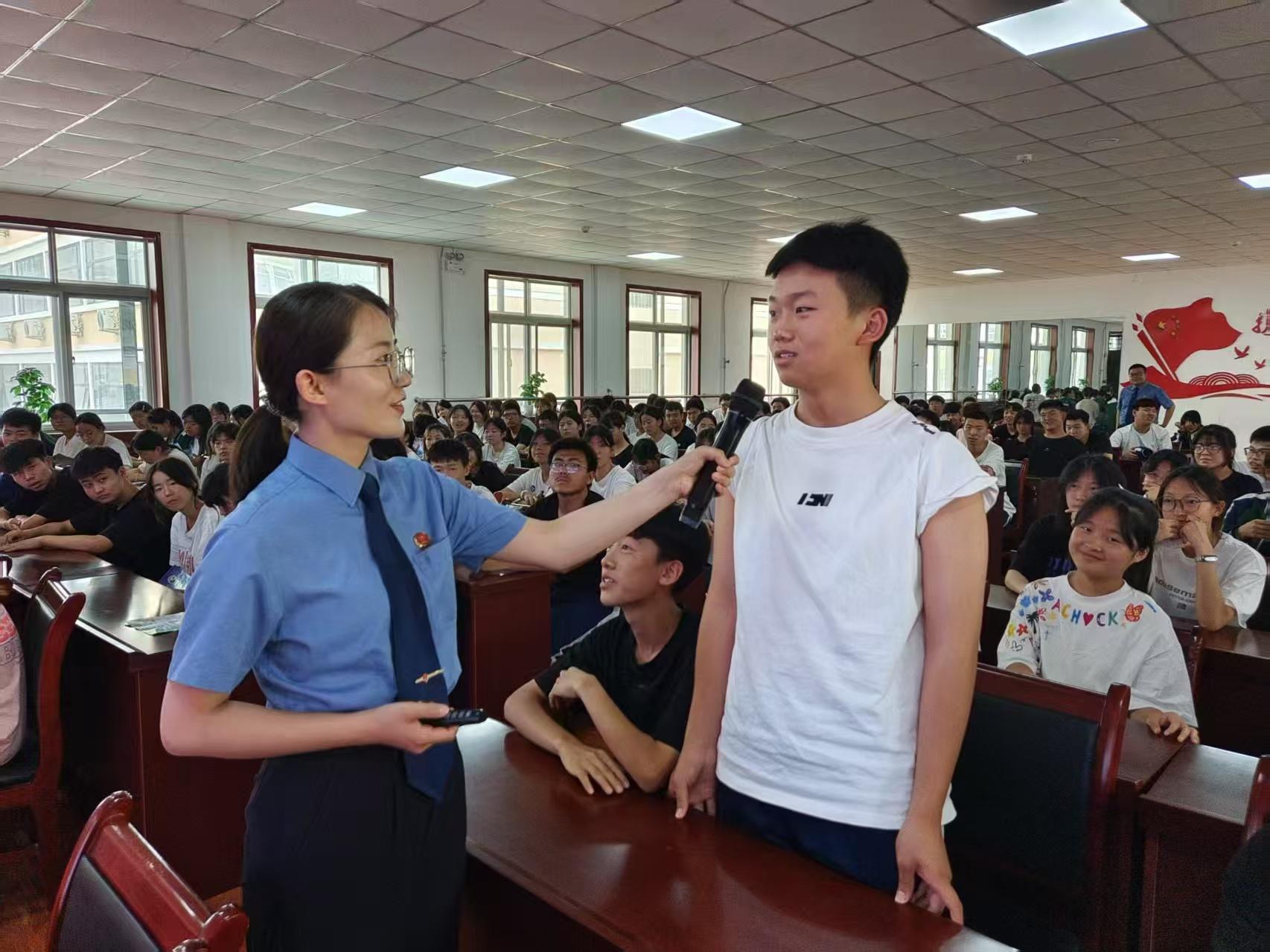 在法治课堂上,检察官通过剖析多起青少年涉毒典型案例,围绕毒品的严重危害、新型毒品的隐蔽伪装形式、禁毒相关法律法规等内容展开讲解。重点聚焦药物滥用带来的生理和心理危害,以通俗易懂的语言,引导学生树立正确的法治观念。互动问答环节中,学生们踊跃参与,现场气氛热烈,在一问一答间,法律意识得到有效强化。