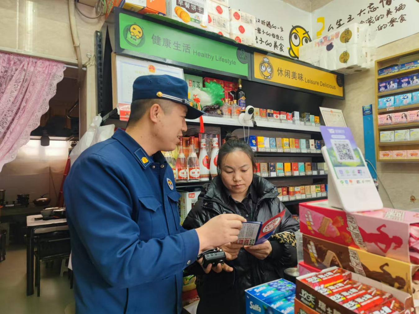 子洲县消防大队志愿者经常穿梭于熙熙攘攘的摊位之间,“老板,摆摊的时候,不能私拉电线,货物不能堵塞消防通道……”志愿者们一边向采购的群众分发印有消防知识的手提袋、消防知识小册子等宣传资料,一边结合居民日常用火、用电、用气的情况,面对面为群众讲解火场逃生、初起火灾扑救、如何拨打“119”及保持消防通道畅通的重要性等消防知识。