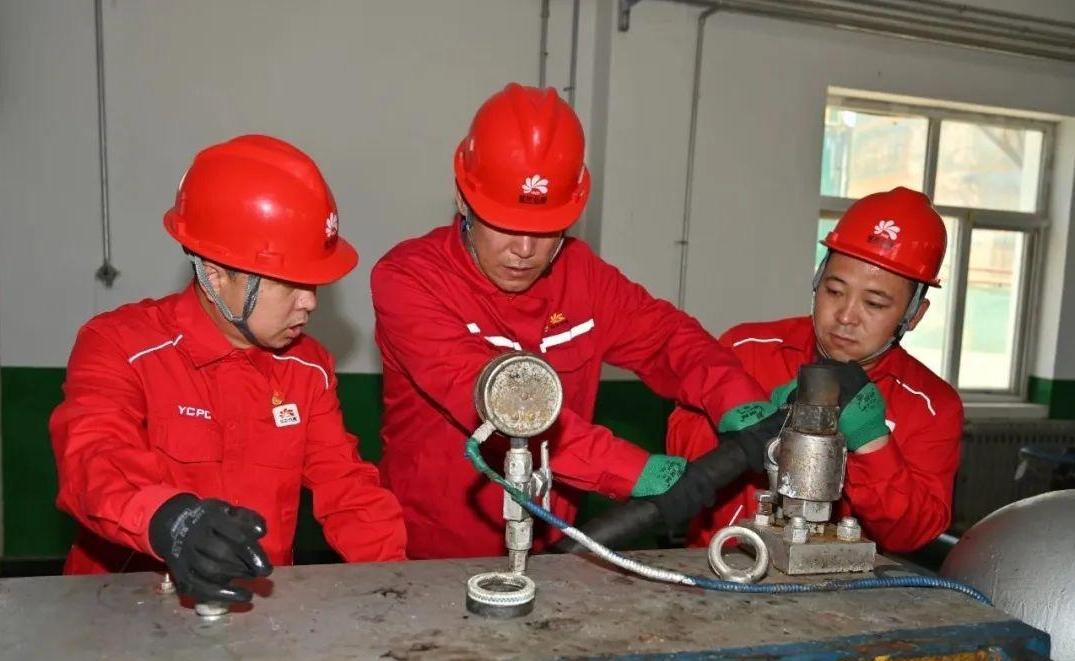 杏子川采油厂郝家坪联合站开展设备巡检。魏塞平/摄