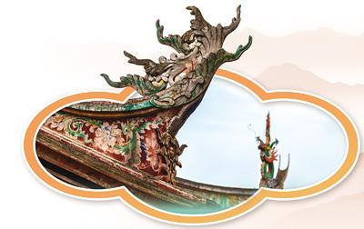 在闽南、岭南地区,因沿海渔盐之利,舟船形象作为百姓的生活寄托而被塑于屋脊,由此产生了众多形制夸张的飞檐屋面。闽南建筑的燕尾脊飞檐展现出独特的地域特色,形如燕尾分叉,寓意家族兴旺。福建泉州关岳庙不仅檐角为起翘连续的曲线,正脊也做成大弧度曲线,以特有的剪黏工艺,镶嵌人物、花卉主题的彩瓷图案,装饰祥禽瑞兽,充满市井生活气息。