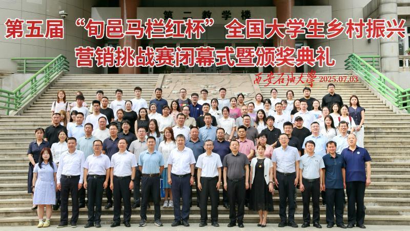 2025年7月3日,第五届“旬邑马栏红杯”全国大学生乡村振兴营销挑战赛在西安石油大学圆满落幕。西安石油大学党委副书记张木、咸阳市副市长叶新阶、旬邑县县长陈永胜等领导出席颁奖典礼。渭南师范学院“风之彩”队、陕西中医药大学“珍馐绘梦·青力领航”队斩获特等奖,西安石油大学“苹什么不”队等4支队伍获一等奖。陕西科技大学等5校获最佳组织奖。这场汇聚全国35所高校智慧的盛会,以实践成果印证了青年力量对乡村振兴的推动作用,也为第六届赛事的全面升级拉开序幕。