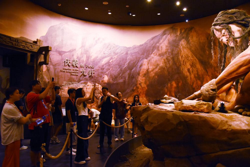 馆内栩栩如生的张仲景、伏羲等巨型雕塑