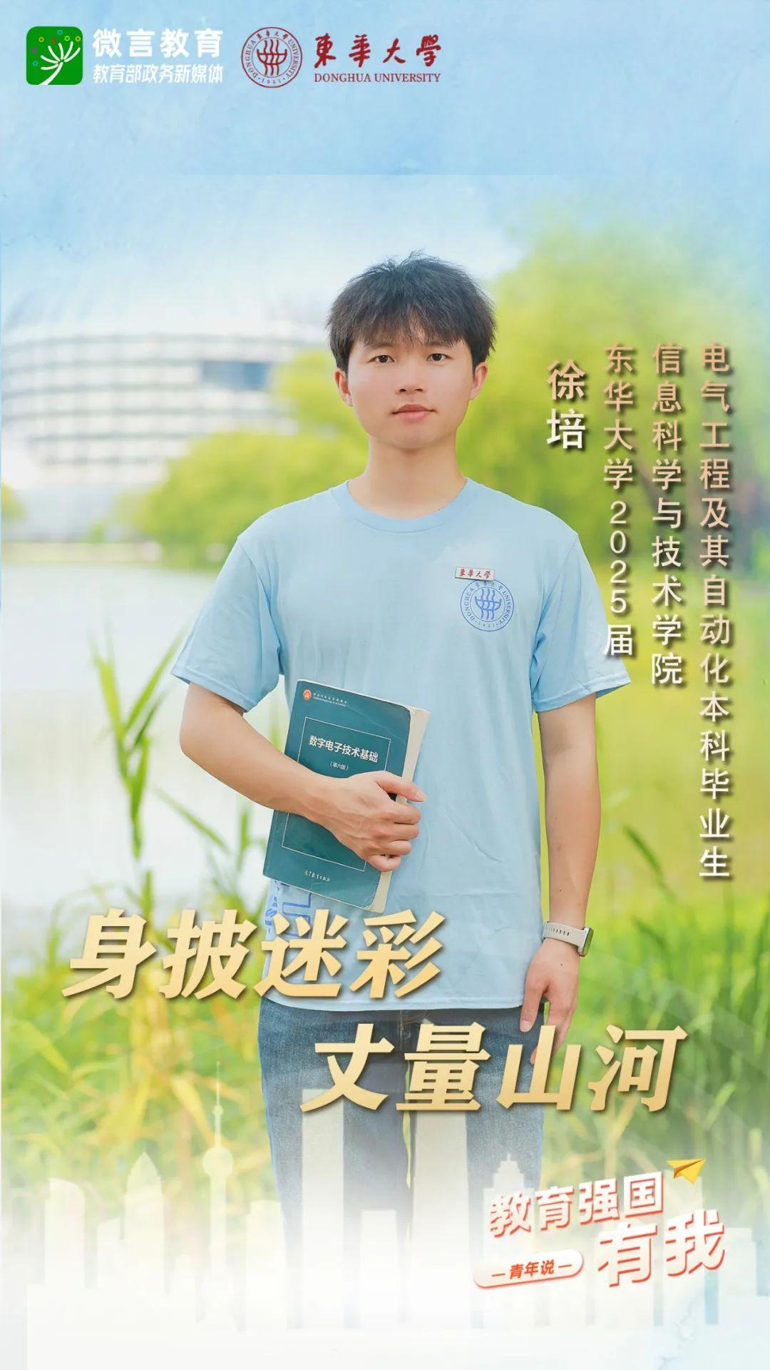 习近平总书记强调,希望广大青年坚定理想信念,厚植家国情怀,练就过硬本领,发扬奋斗精神,到祖国和人民最需要的地方发光发热,为中国式现代化建设贡献青春力量。教育强国建设,青年何为?教育部政务新媒体推出“教育强国,有我!”网络主题宣传活动之“青年说(报国篇)”系列,展现青年学子将个人理想融入国家发展的青春担当。今天,跟教育小微通过1个视频和1组海报,一起来看东华大学青年学子与青春对话——