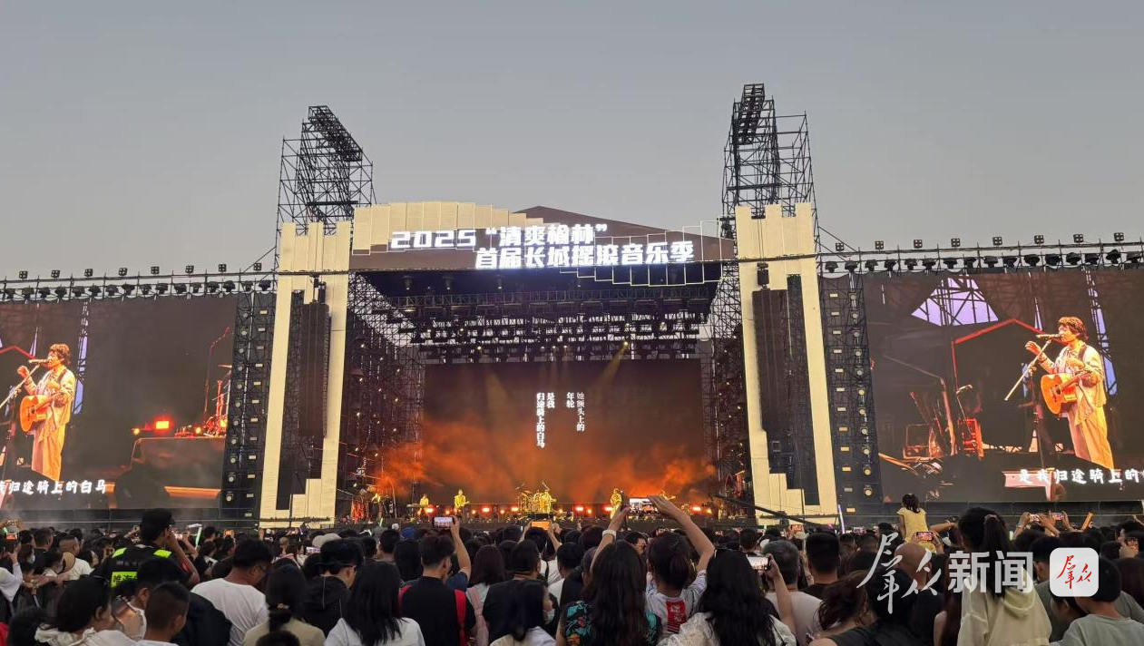 草地上,老人倚着背包随调子轻晃脑袋,年轻人举着荧光棒在人潮里碰撞欢呼,家长把孩子架在肩头——稚嫩目光里,摇滚成了触手可及的欢喜。老人眼角的笑纹与年轻人发梢的汗珠相映,风里都是松弛的气息。当最后一个音符消散,留下的不仅是余音,更是一种信号:榆林正以音乐为桥,把自己铺成一方舒展的会客笺,让历史的厚重与现代的鲜活,都在草浪里自然交融。