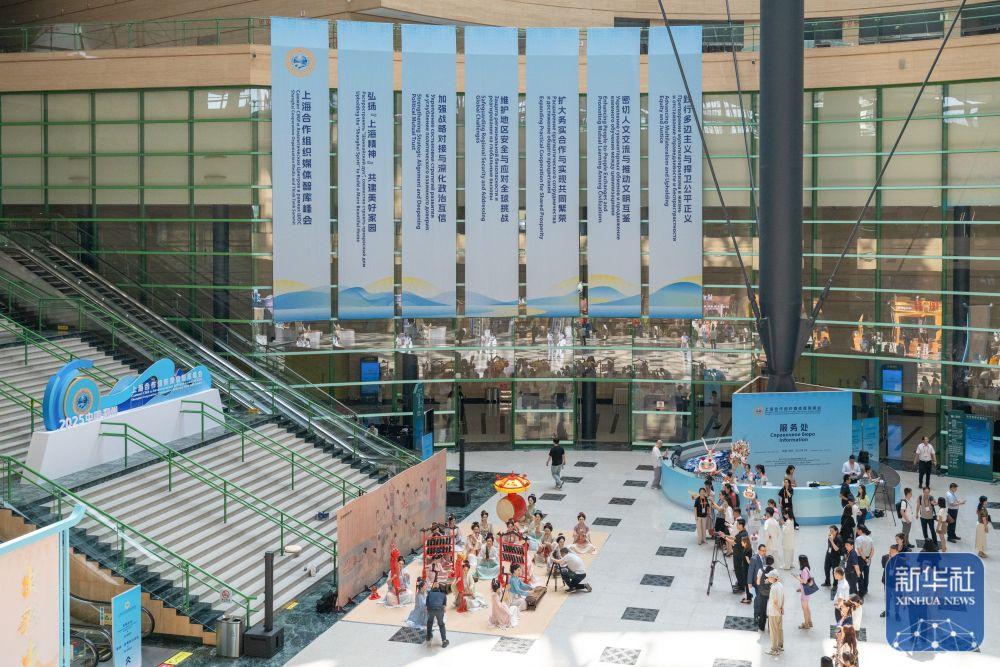 ↑ 这是在上海合作组织媒体智库峰会会场进行的《合乐图》民族乐器复刻展演(7月24日摄)。新华社记者 胡竞文 摄