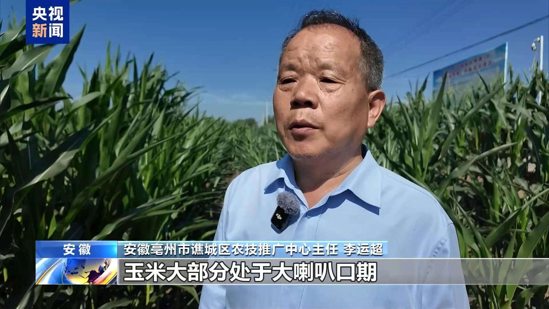 安徽亳州市谯城区农技推广中心主任 李运超:我们谯城区的玉米大都处于大喇叭口期,缺水会影响雄穗的抽出,花粉坏死,降低结实率,影响产量。因此,当前要及时地浇水。