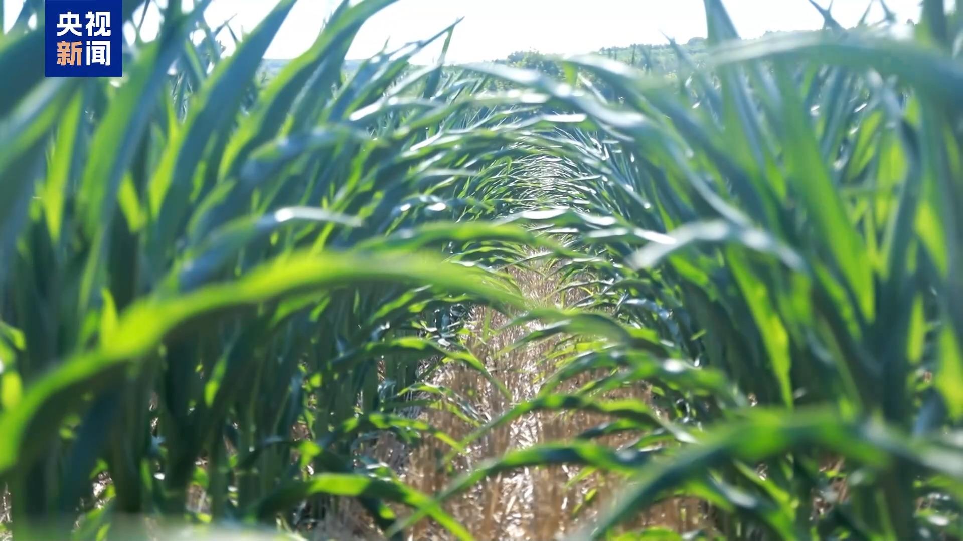 眼下,河南周口项城玉米正值生长关键期,近期的持续高温,再加上有效降水不足,部分地块玉米叶片出现卷曲。在郑郭镇,当地正在进行第二轮全面补水。7台卷盘式自走喷灌机360度旋转,实现精准覆盖,200亩玉米田的滴灌带也持续输送水源。