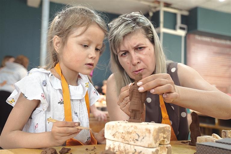 “如今,很多外国游客都会在参观‘地下军团’兵马俑后,来这儿体验一下陶俑非遗制作技艺,最多的一天我们接待了500多位外国客人。”韩咪咪说,面对激增的需求,她大胆创新,推出了Q版兵马俑文创作品。作品造型圆润可爱,保留兵马俑服饰纹理、发型和配饰精髓,一改传统威严形象,一经推出就很受欢迎。很多外国游客因为可以亲手制作陶俑而更加喜欢中国文化。