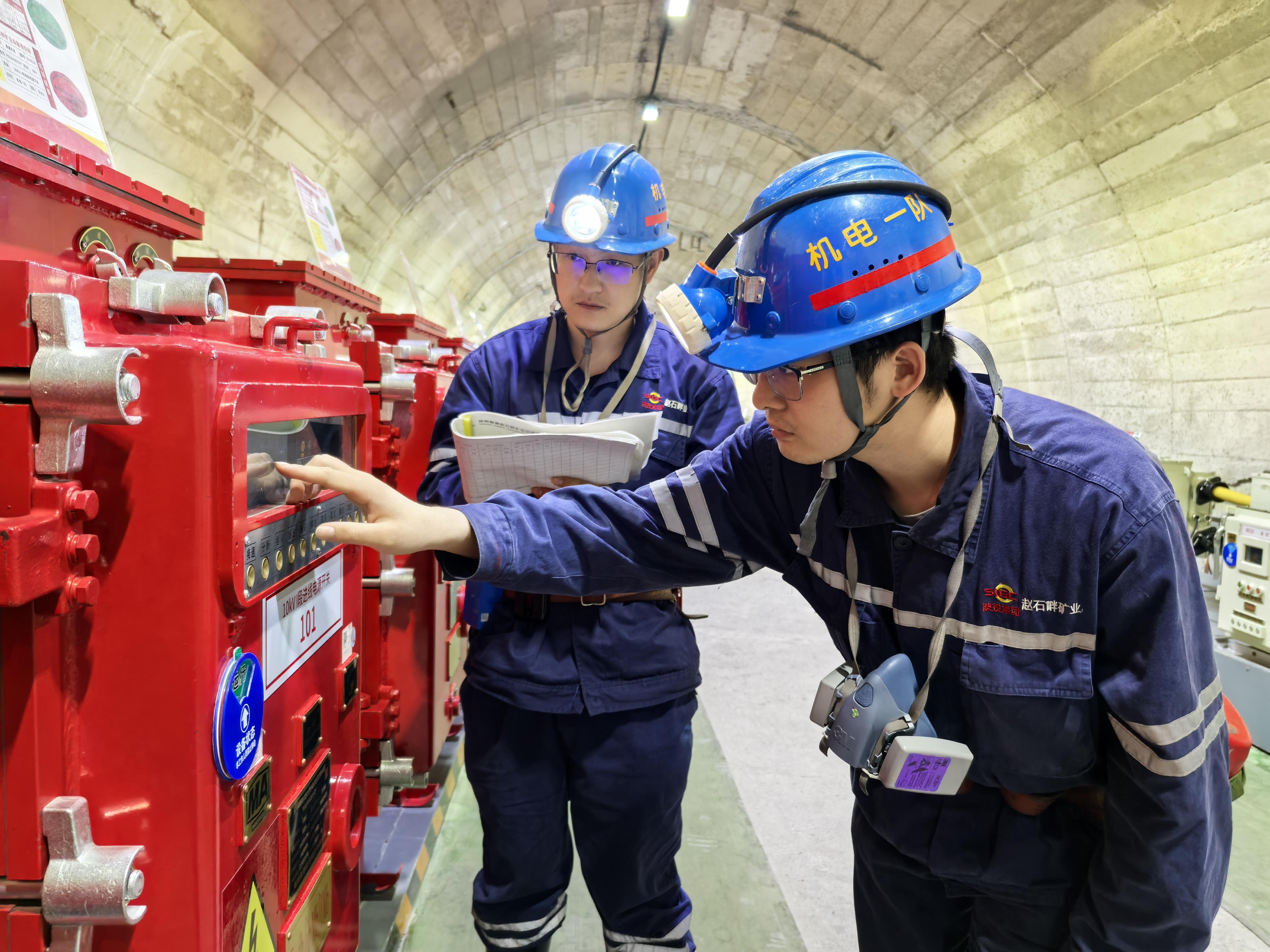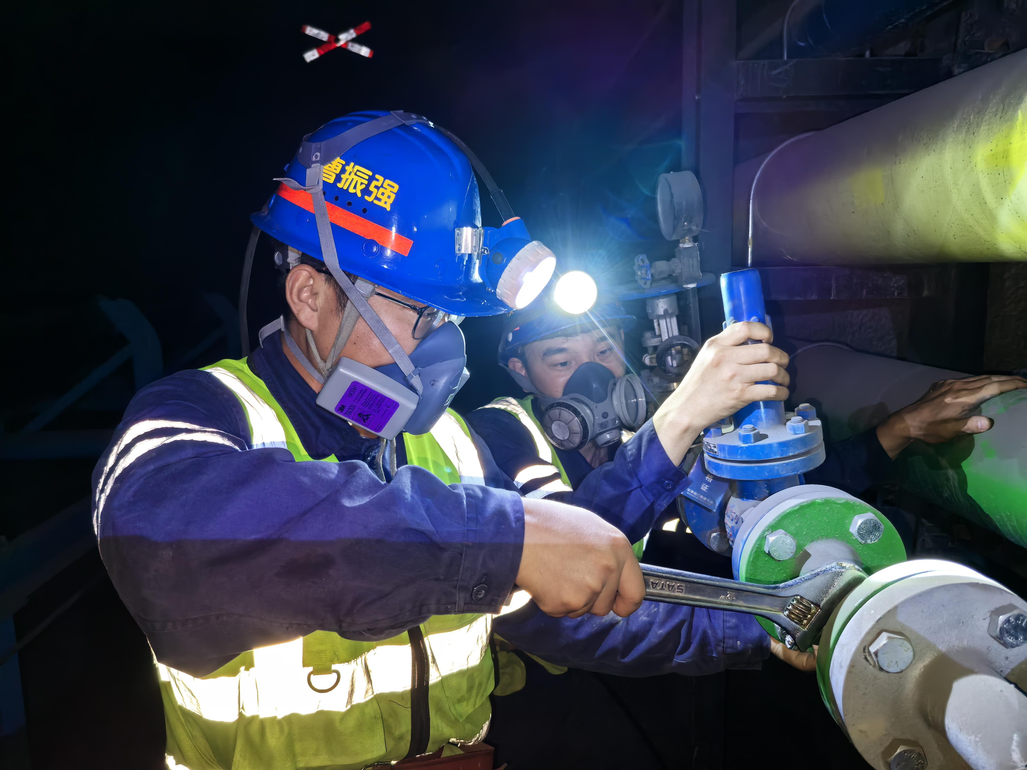 各值班室灯火通明,电话逐一拨向调度指挥中心:“主排水泵运行正常、110kV变电站负荷稳定、通风机风压达标……”当最后一组数据确认无误,交班人与接班同事碰拳:“兄弟,交给你了!”