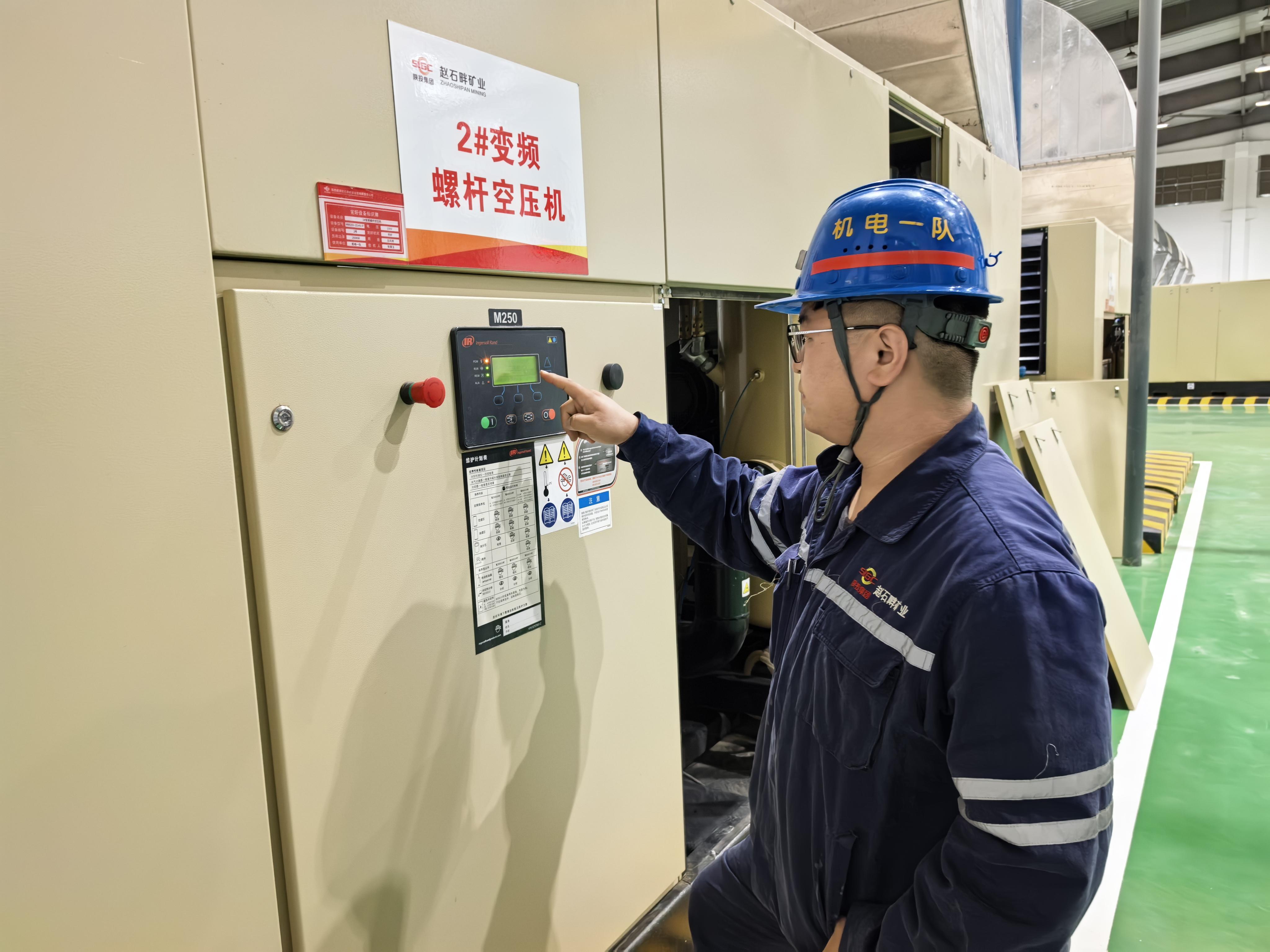 保证输出空压稳定在0.7-0.8兆帕,将压缩空气送入井下,为井下风镐、风泵提供动力。班长杜吴晨摸着管道说:“只要管道是热的,心就是稳的”