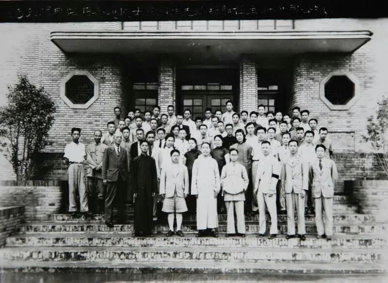 图为李国伟(前左三)和夫人荣慕芸(二排右五)与厂高管人员在办公楼前合影。长乐塬抗战工业遗址管委会 供图