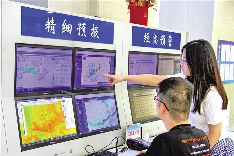 8月11日,咸阳市气象台预报员根据X波段双偏振相控阵雷达组网分析研判强对流回波发展趋势。 群众新闻记者 许奥博摄