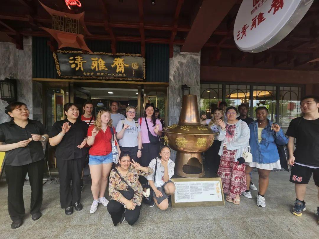 文明的深度对话,同样在西安街头巷尾升腾的烟火气中热烈展开。访学团走进西安饭庄、德发长饺子馆、同盛祥、清雅斋、西安烤鸭店等承载着城市记忆的中华老字号。在非遗大师的引导下,青年学子们亲手掰开一块块坨坨馍,感受馍粒大小对汤汁吸收的微妙影响;尝试捏出形态各异的花样饺子,体验指尖上的匠心……这不仅是味蕾的盛宴,更是理解西安生活美学、感悟中华饮食“食不厌精,脍不厌细”智慧的独特课堂。