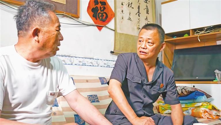 魏斌(右)在群众家里了解案件事实(资料照片)。 受访者供图