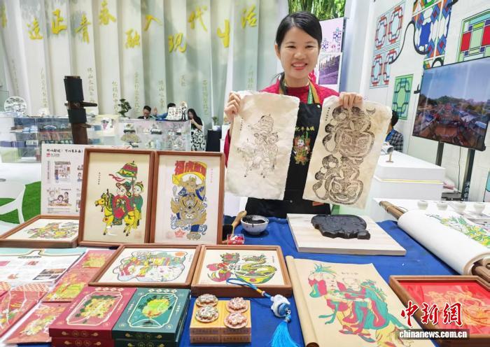 8月15日,2025“新疆是个好地方”非遗援疆主题展示活动在新疆和田约特干故城开幕。图为刘钟萍展示用桑皮纸制作的木版年画。 中新社记者 应妮 摄