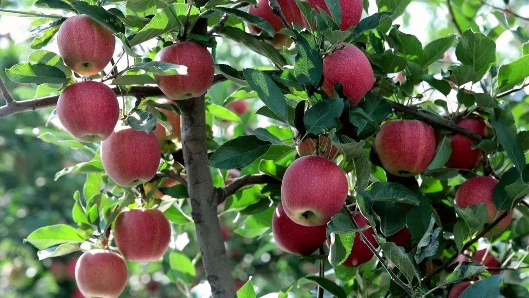 颗颗色泽鲜艳的巴克艾苹果等待采摘