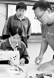 湖南省永州市江永县职业学校的老师在指导学生进行服装裁缝实践操作。田如瑞摄/光明图片