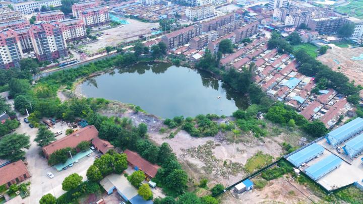 昔日的矿坑如今已成了一方水塘,一侧修建起了住宅楼,另一侧仍是荒地。水塘不远处,矗立着一块“利国矿山中国劳工殉职纪念塔”的石碑。