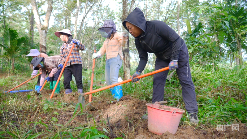 黄洪霞和村民一起挖虎乳灵芝(央广网记者 付美斌 摄)