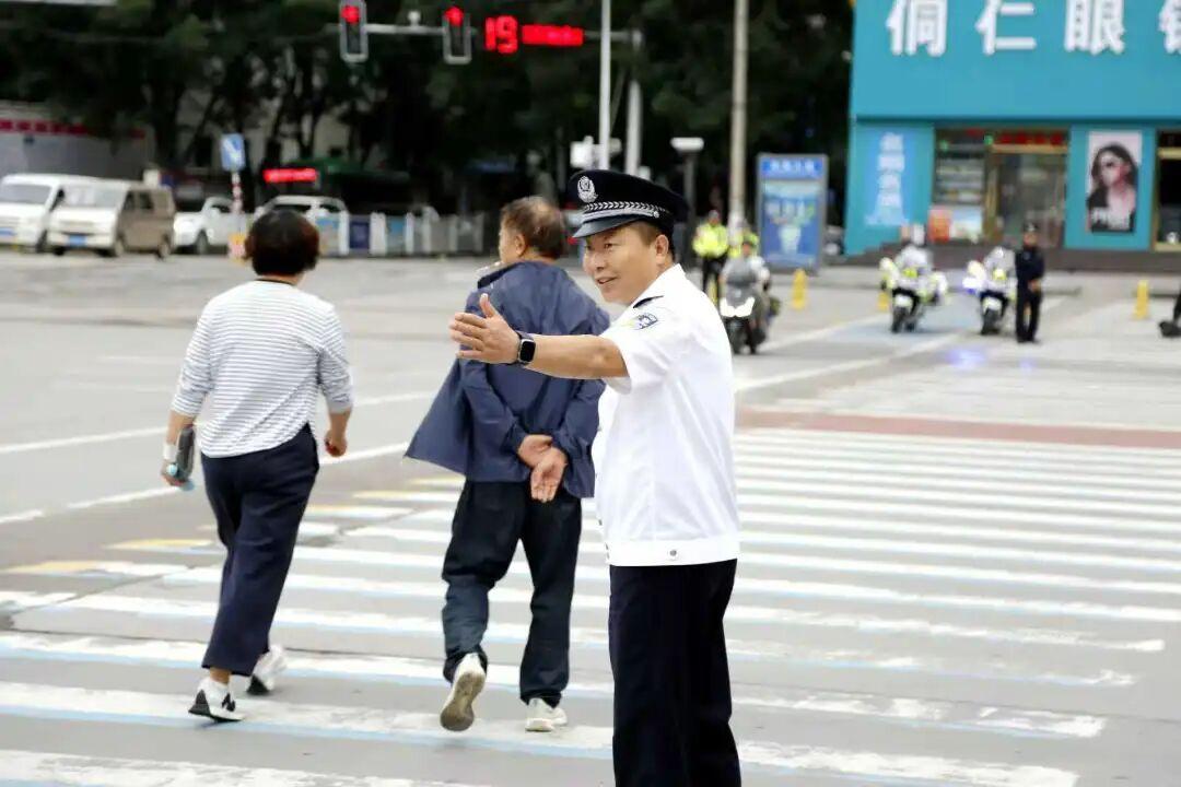 8月27日清晨7时30分,延安市宝塔区新区轩辕大道与韶山街的十字路口,车流人流已渐入高峰。七、八名来自延安市公安局机关的民辅警各司其职,有的在劝阻试图闯红灯的行人,有的在指引接送学生的车辆即停即走。